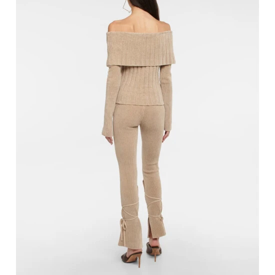 The Duci top from Jacquemus is shaped for a figure-sculpting fit with a contemporary off-shoulder neckline. Itβs rib-knitted from a cotton-blend with thumb holes at the cuffs.