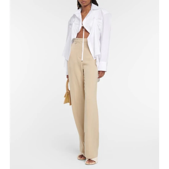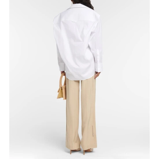 Jacquemus challenges conventional design proportions with the La chemise Amaro shirt. Crafted in France from poplin, the design features mother-of-pearl buttons and includes internal and external structuring to maintain its boxy shape and billowing front.