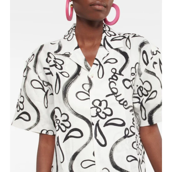 Jacquemusβ affinity to the French countryside takes center stage with the La chemise Jean shirt. Decorated with the Painted Flower print, this piece has classic touches, from a camp collar to mother-of-pearl buttons.