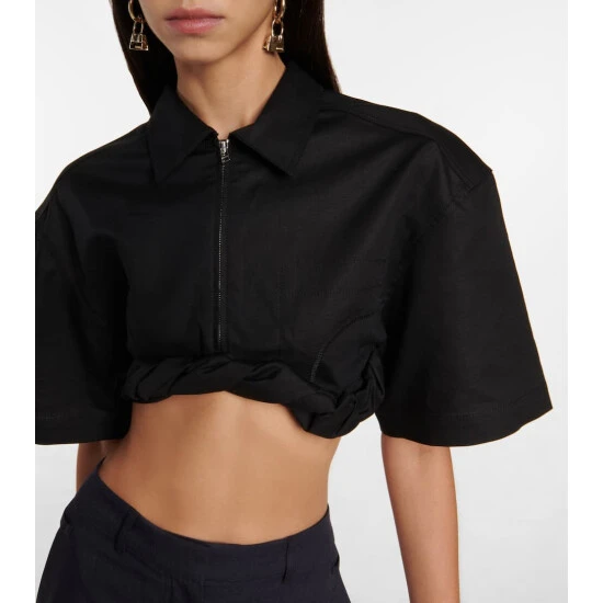 Keep things contemporary with the La Chemise Silpa top from Jacquemus. Made from cotton and linen, the cropped design has a sporty half-zip closure and a rolled hem.