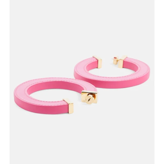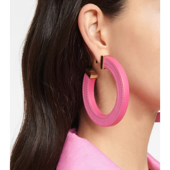 Covered in smooth leather all around, the La Creole Linu hoop earrings from Jacquemus are a vibrant finishing touch to your looks. They’re tipped with golden hardware at the edges.
