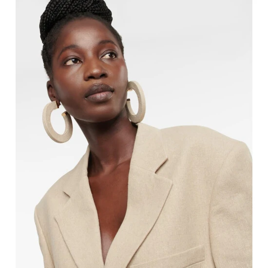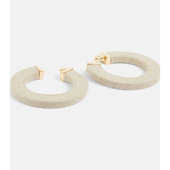 An unexpected twist on a classic shape, the La Creole Linu earrings from Jacquemus are made from gold-toned brass with woven linen hoops. They’re made for pierced ears with pin fastenings.