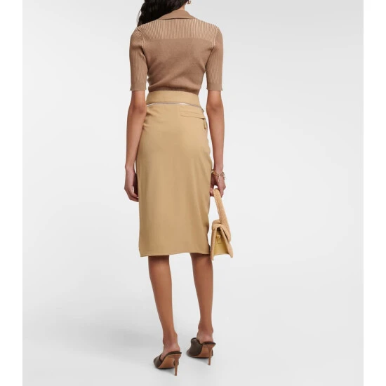 Inspired by the natural delights of the French countryside, Jacquemus creates an organic vision for the La Jupe Bodri. This draped style has contrasting piping, a ruched front, and an asymmetric hem.