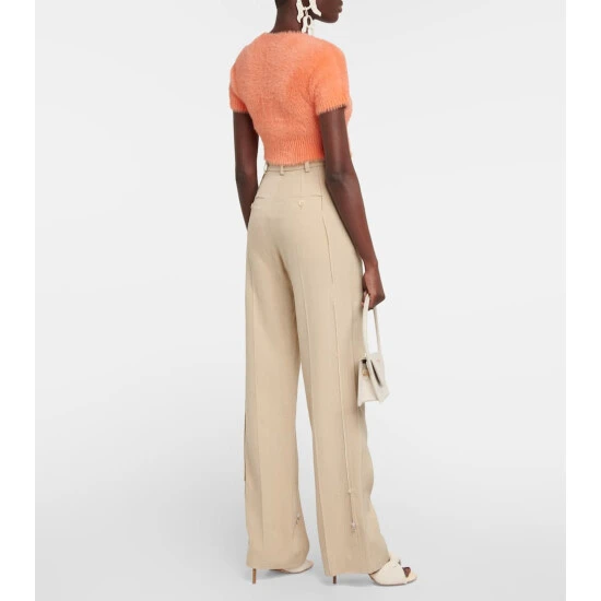 Bring some allure to your everyday edit with La Maille Neve cropped cardigan from Jacquemus. The tactile knit style features a plunging neckline held together by a dainty gold-toned logo charm.