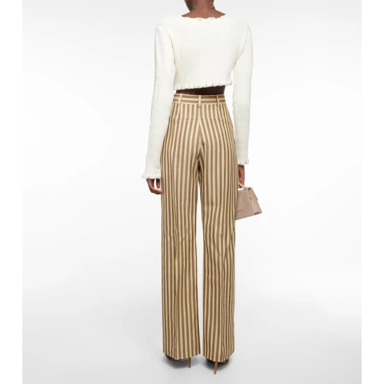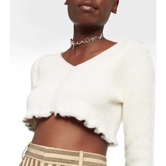 Jacquemusβ La Maille Santon top is rib-knitted from a linen-blend to an ultra-cropped length. Itβs shaped with a deep V-neckline, lightly dropped shoulders, and ruffle trims at the hem and cuffs.