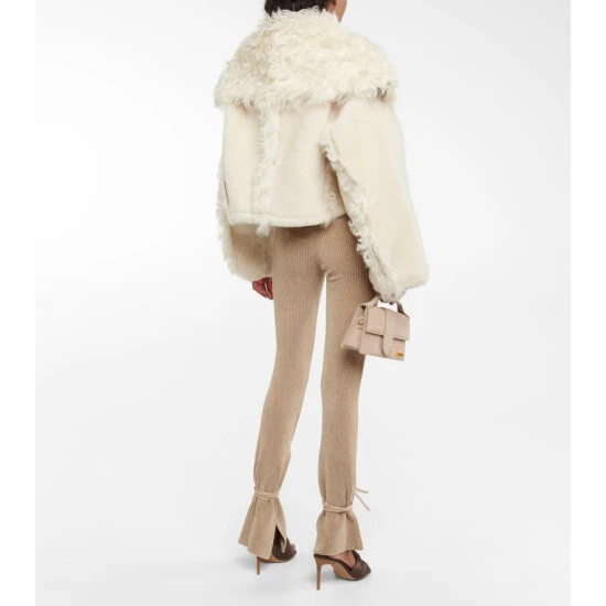 The La Veste Piloni cropped jacket from Jacquemus is made from shearling with long-haired detailing. This style has an oversized collar, bell sleeves, a hidden zip closure and an interior drawstring.