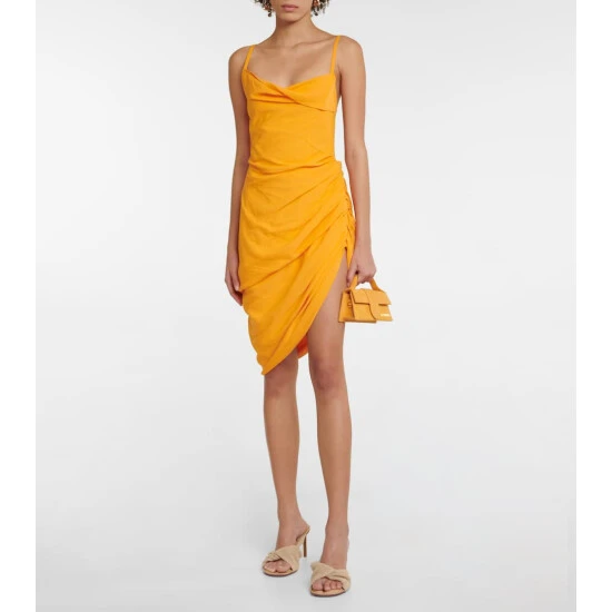 The latest addition to Jacquemusβs offering of pint-sized bags is this aptly named Le Bambino. Made from grained orange leather, the compact design has an adjustable strap that can also be styled across the body. Its golden branding will pop against the label’s coveted tonal linen separates.