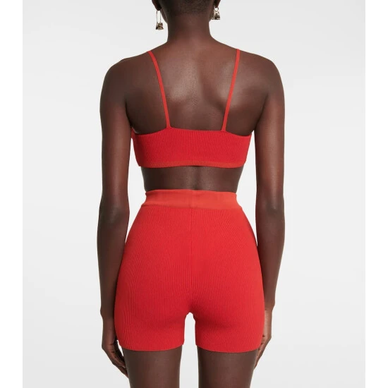 Jacquemus is inspired by color and character, telling a vibrant tale with every piece. The Le Bandeau Pralu top is shaped for a streamlined V-neck silhouette with a logo plaque on one shoulder strap.