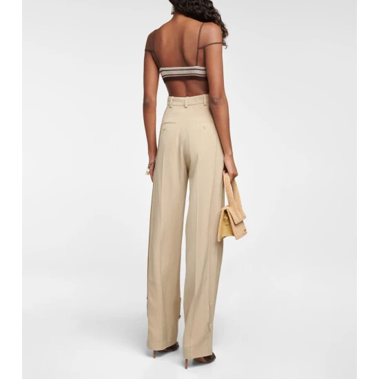The Le bandeau Sognu bra top from Jacquemus arrives in a transparent pleated knit with a network of slim straps. The cropped design features an open neckline and raw edges for a subtle label-signature nod.