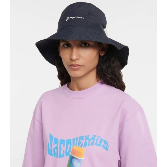 The Le Bob Pescadou bucket hat from Jacquemus is made from canvas with a water-repellent coating. It has a wide topstitched brim and logo embroidery.