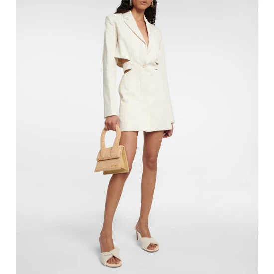 This iteration of Jacquemusβs iconic Le Chiquito Moyen Medium bag is made from curled raffia for a tactile finish. A compact silhouette with curved top handles, the adjustable shoulder strap is detachable for ultimate versatility. Should you want to forgo your wallet, it has a secure slip pocket for cards.