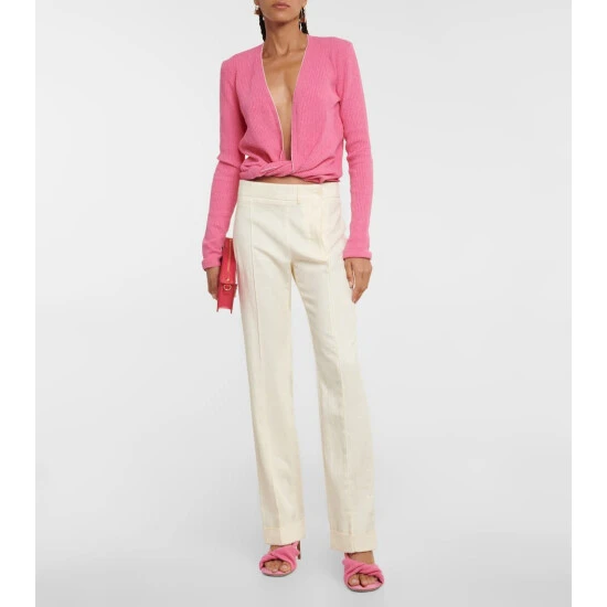The bright pink Le Gilet Noué top from Jacquemus is sure to turn heads. Spun from a cotton-blend knit, this design has an exaggerated plunging neckline that ends in a twist detail.