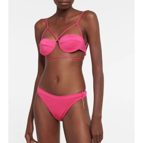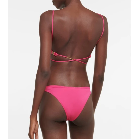 Jacquemus’ Le Haut Signature bikini top is made from stretchy swimsuit fabric in hot pink and features underwired cups and slim straps with gold-toned logo hardware.
