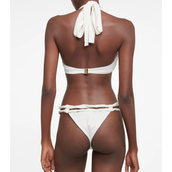 Le Haut Sofio bikini top from Jacquemus is a halterneck white design with a draped front and twisted shoulder straps and it offers medium coverage.