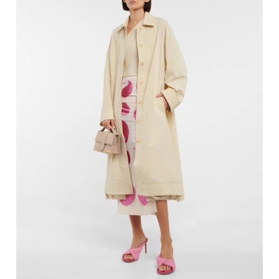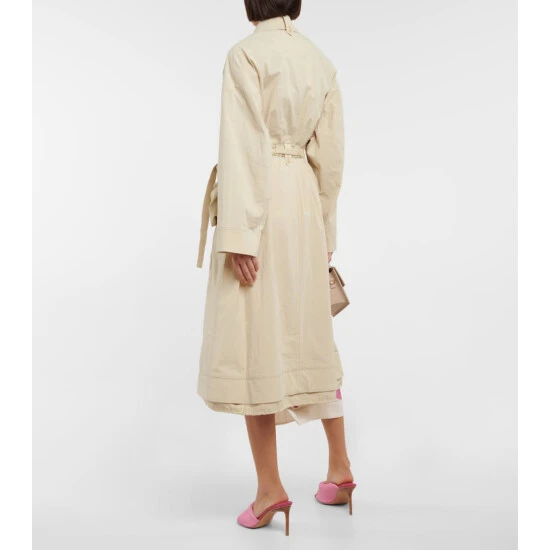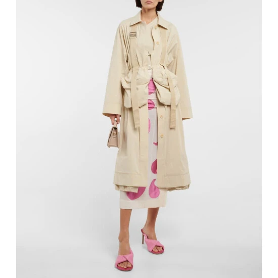 The Le Manteau Carozzu parachute coat from Jacquemus features dropped shoulders, a workwear collar and a removable halter harness with zipped gusseted pockets. The hidden button placket with engraved buttons adds chic detailing.