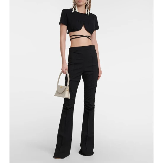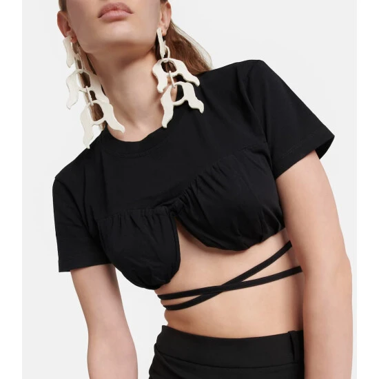Jacquemus brings a touch of sensuality to wardrobe staples with the black Baci crop top. Made from soft cotton jersey, it’s defined by a corseted bust and slender ties that wind elegantly around the body.