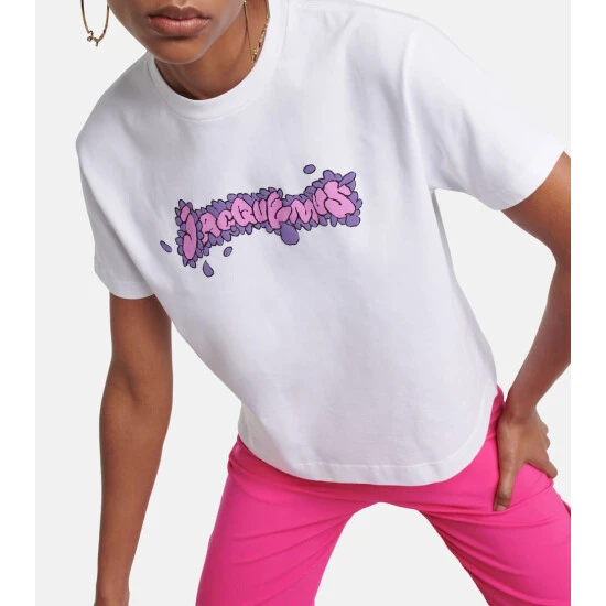 Le T-shirt Desenho T-shirt from Jacquemus is part of the dreamy Le Raphia Collection. Made from cotton, the fitted style features a playful logo print and a round crewneck with ribbed edges.