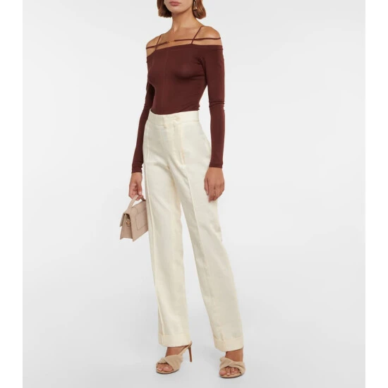 The Le T-shirt Sierra top from Jacquemus is made from sheer, close-fitting jersey and has an off-shoulder neckline traced with straps. Notice the corset-inspired seaming at the back.