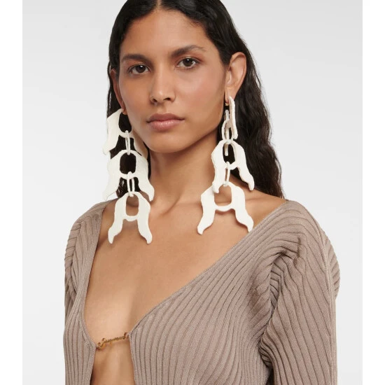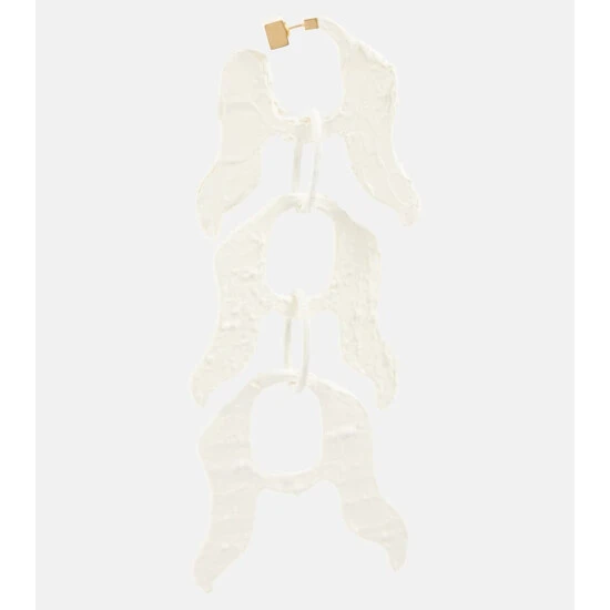 Jacquemus’ Les Boucles Gesso Longues earrings are made from resin-coated brass in a wing-shaped silhouette. The linked design takes on a plaster-effect finish and has a push-back fastening.