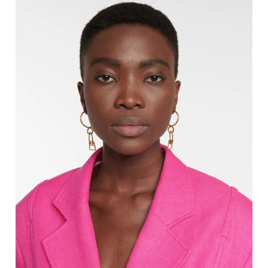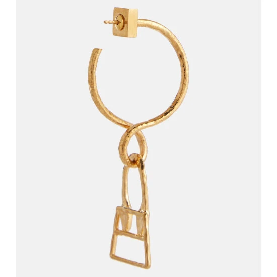 Jacquemus’s iconic accessories include the Les Creoles Chiquita earrings. Made from hammered gold-toned brass β the hoop pair features miniature iterations of the label’s Le Chiquito totes, complete with logo detailing.