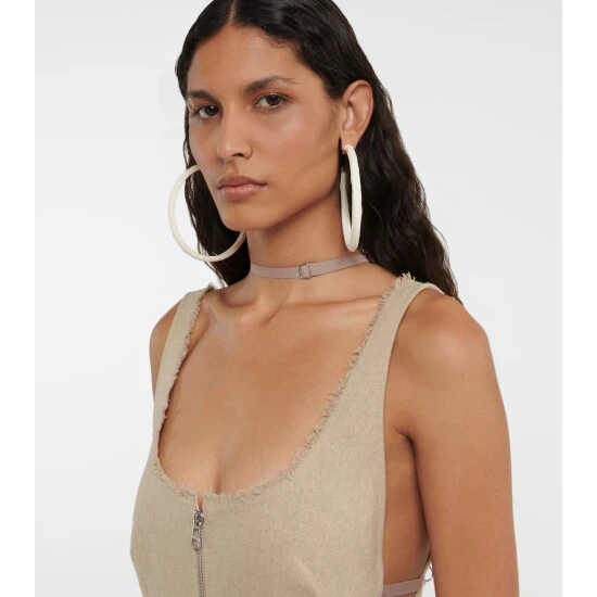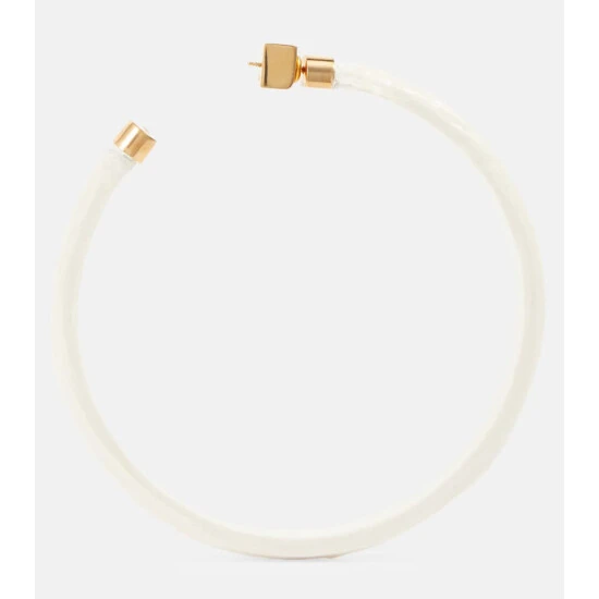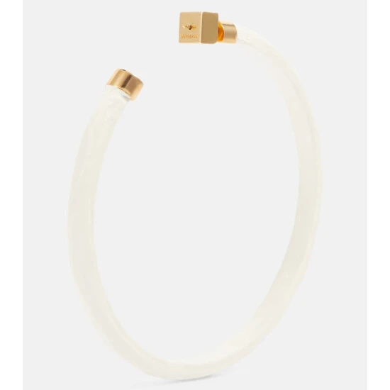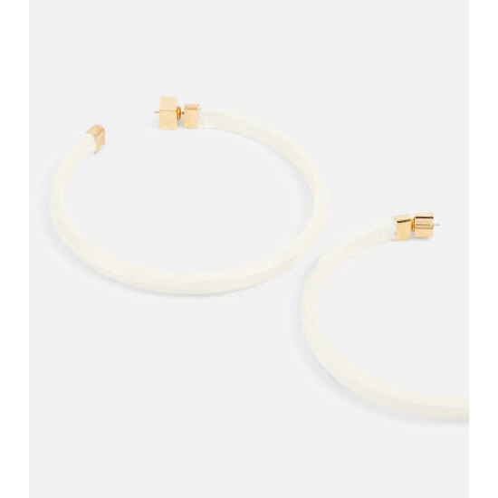 Jacquemus’ Les Créoles Plâtre hoop earrings showcase the brand’s signature plaster-effect finish. The oversized hoops are made from resin-coated brass and have a discreet push-back fastening.