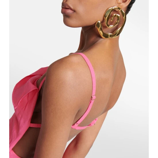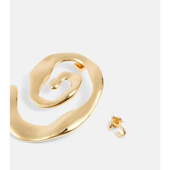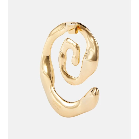 The brass composition and gold-plated finish of Jacquemus’ Les Créoles Turbi earrings unify the asymmetric design. Made in Italy, both the J-shaped stud earring and large spiral earring have a hammered finish.