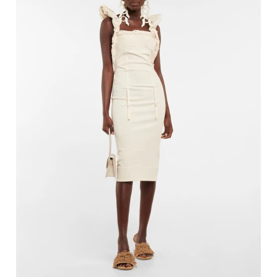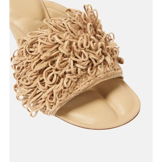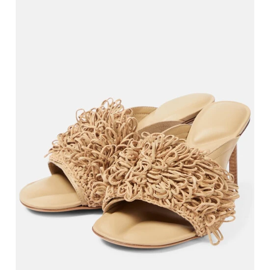 Jacquemus’ Les Mules Aqua sandals are playful and elegant in equal measure. Made from beige leather, the style has a cushioned insole and wide-stiched vamp embellished with braided and looped leather strands for a tactile finish.