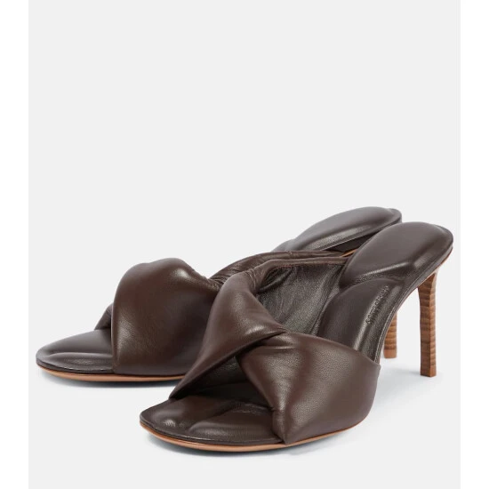 The twisted toe straps are the focal point of Les Mules Bagnu mules from Jacquemus. They’re made from supple brown leather, featuring stiletto heels and padded insoles for additional comfort.