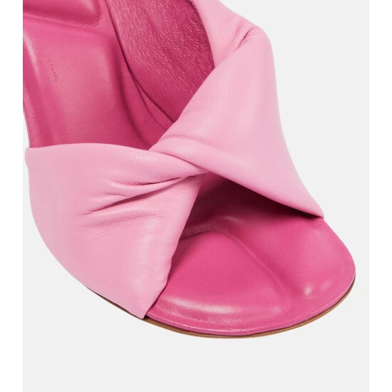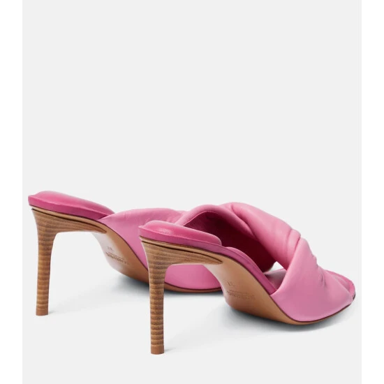 The twisted toe straps are the focal point of Les Mules Bagnu from Jacquemus. They’re made from supple bright pink leather, featuring stiletto heels and padded insoles for additional comfort.