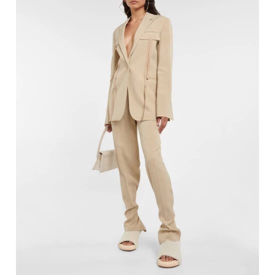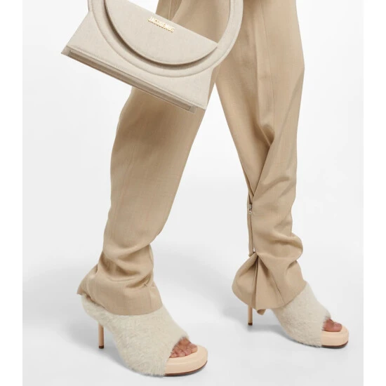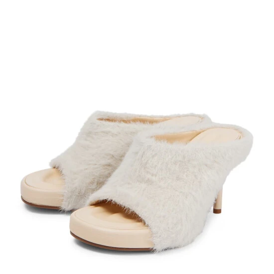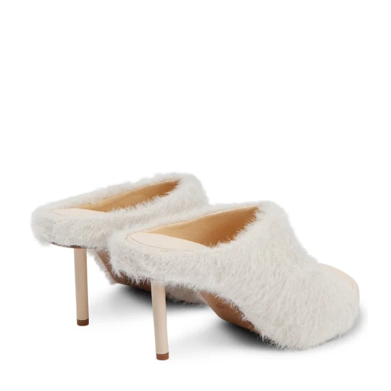 Imbued with the signature Jacquemus focus on simple modernity, the Les Mules Nuvola mules appear with tactile knitted uppers. This style has leather soles and linings, square toes, and cylindrical heels.
