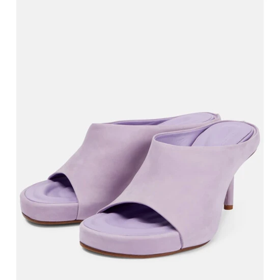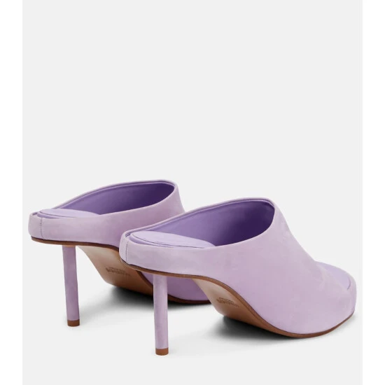 Let Jacquemusβ Les Mules Nuvola mules be the focal point of all your ensembles. Set on stiletto heels, theyβre made from smooth, purple suede with ergonomic footbeds and rounded open toes.