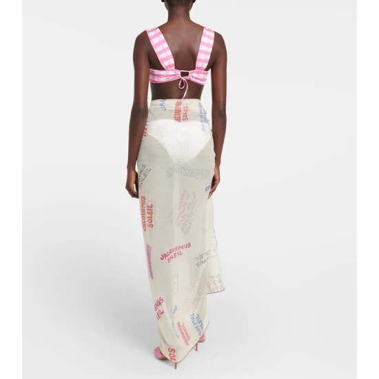 This beach cover-up from Jacquemus showcases the brand’s “Jacquemus Soleil” logo in an all-over print. Made in Italy, the cotton and silk style is cut to a maxi-length.